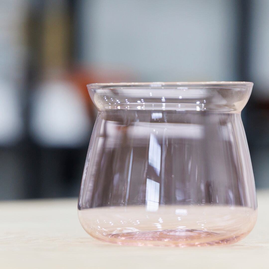 本体は薄いガラス。コーヒーを飲むときには、鼻まですっぽりとグラスに入る設計で、香りや明るさ、甘みをより感じられます。OREA独自の形状を採用した高級感のあるガラスボディです。